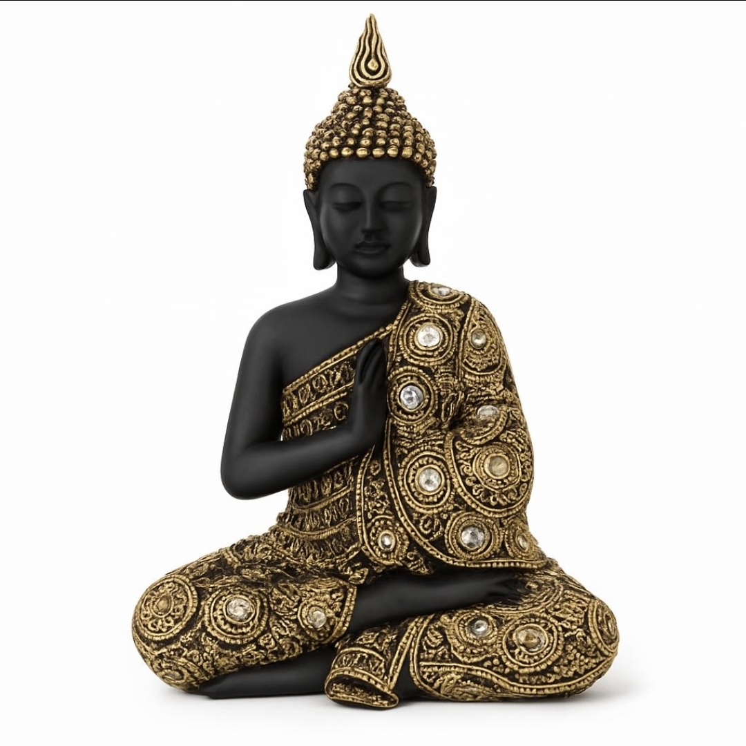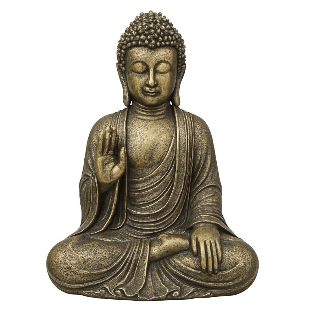 Een bronskleurige Boeddhabeeld voor meditatie, ontworpen voor plaatsing bij een theetafel, in een tuin, op een gazon of bij een vijver of aquarium. Gemaakt van hars, dit decoratieve stuk is perfect voor landschapsarchitectuur en is een attent cadeau voor 30,00 € 0,00 €